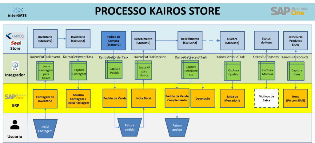 Processos implementados no integrador SAP Business One x Kairos Store: